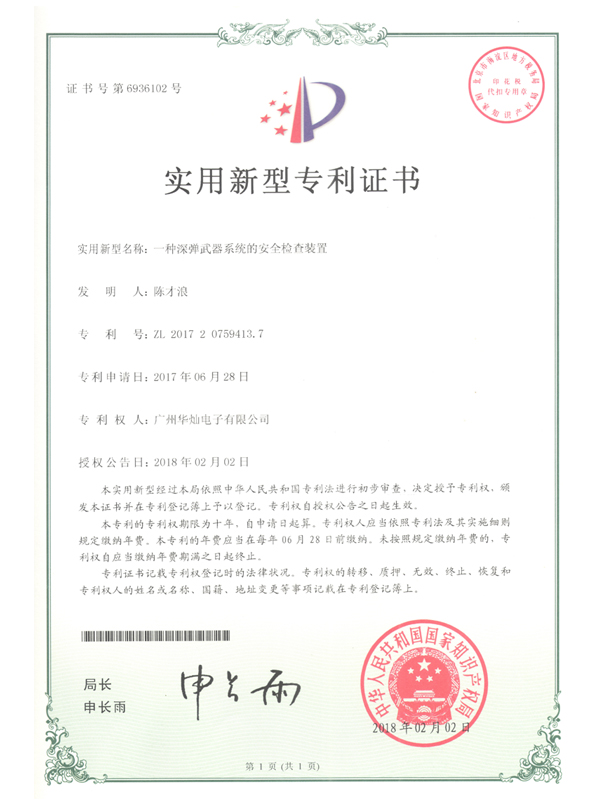 Safety inspection device for certificate number 6936102 deep-bomb weapon system